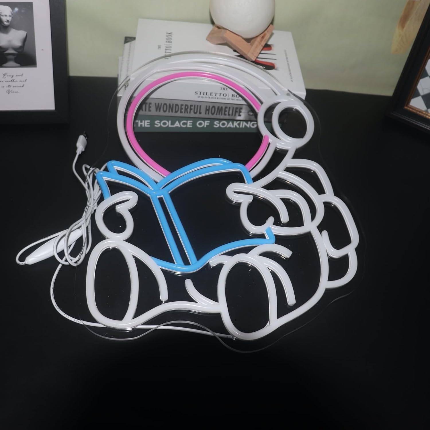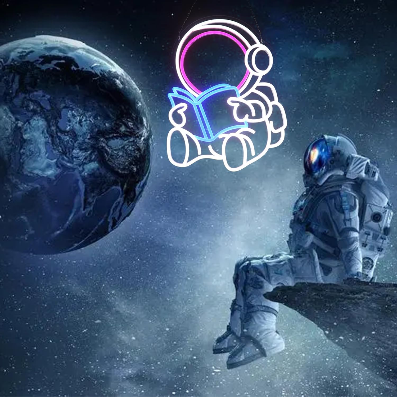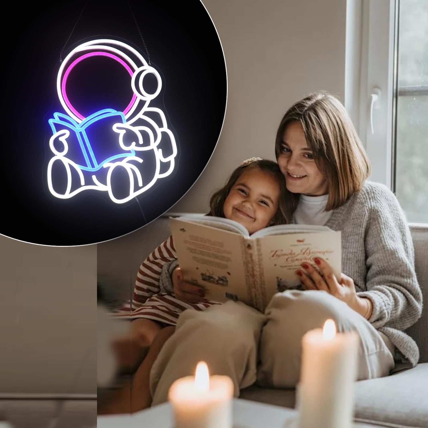 Astronaut Reading Neon Sign – LED Space Wall Decor for Book Lovers