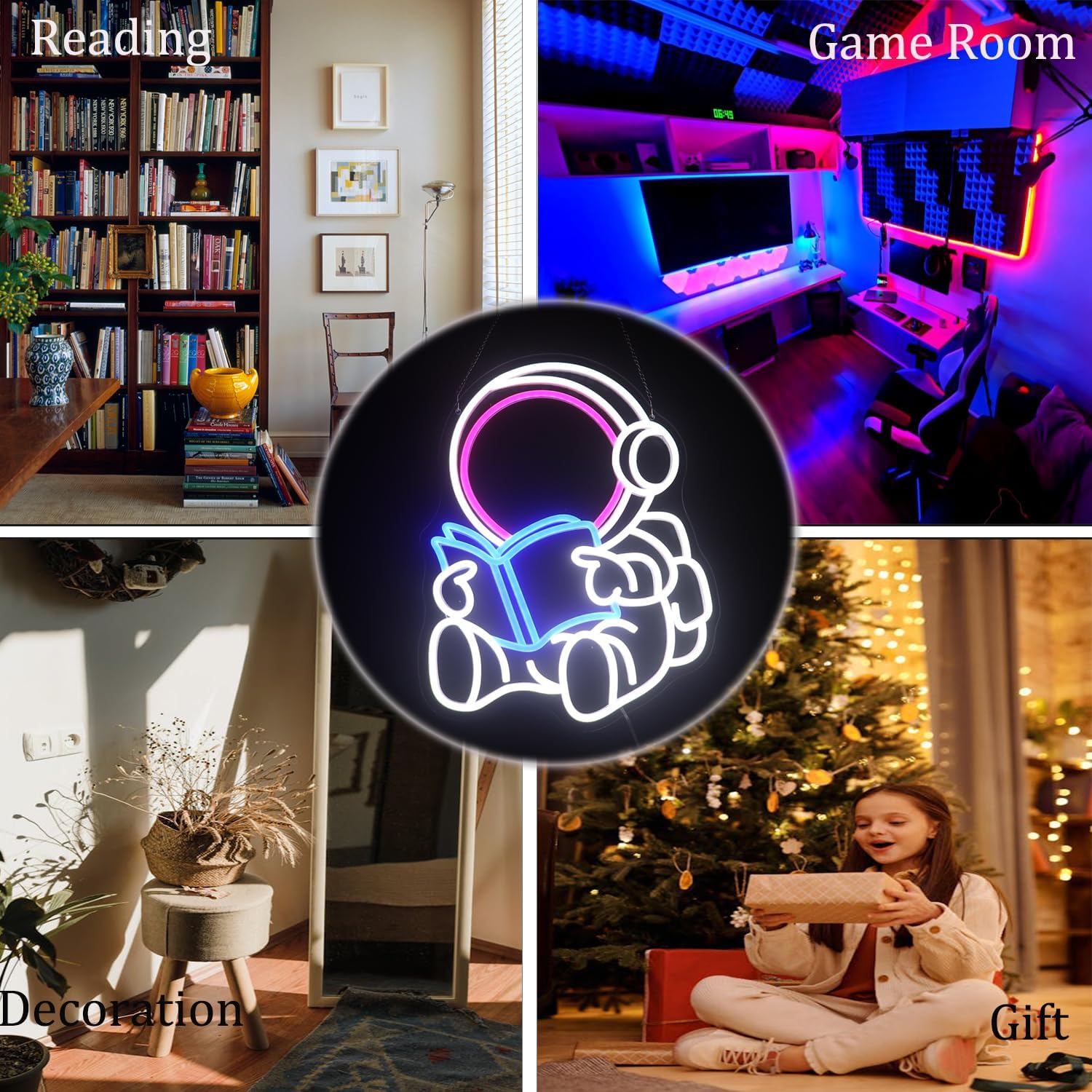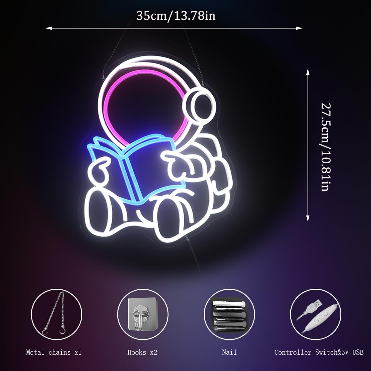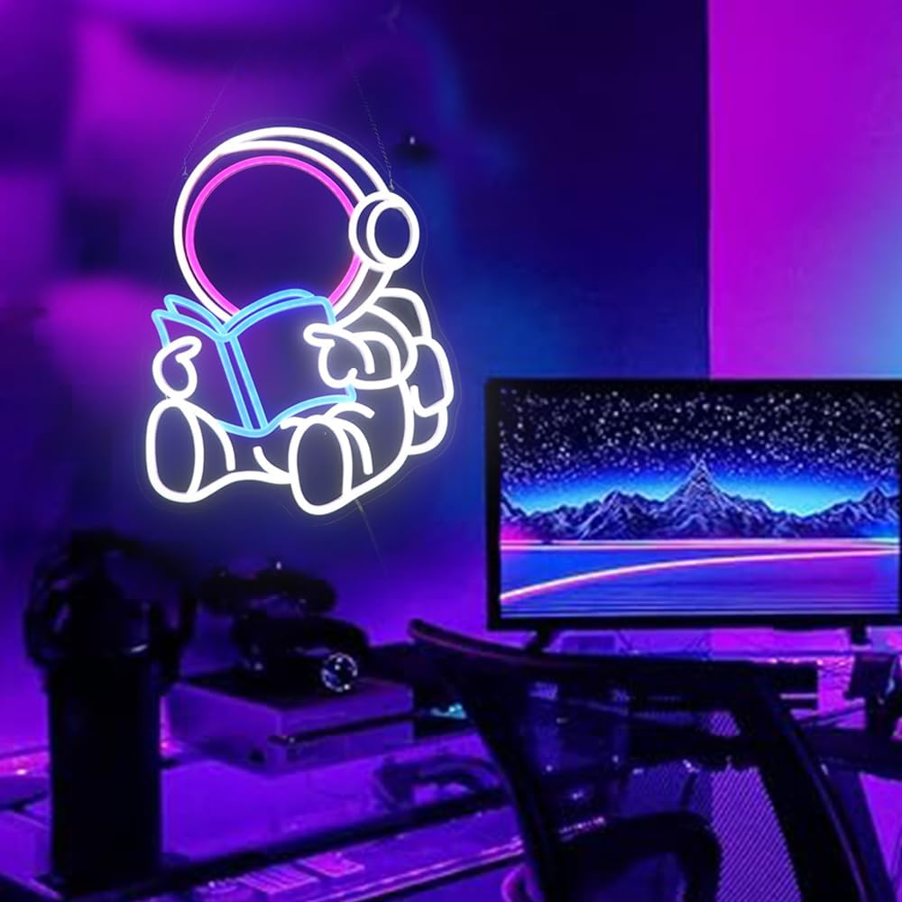 Astronaut Reading Neon Sign – LED Space Wall Decor for Book Lovers