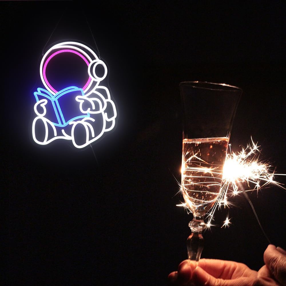 This astronaut reading neon sign perfectly blends space exploration vibes with a love for books. Featuring a cute astronaut sitting down with an open book, it’s a great piece of wall decor for libraries, kids’ rooms, study areas, book cafés, or anyone who loves space and reading.