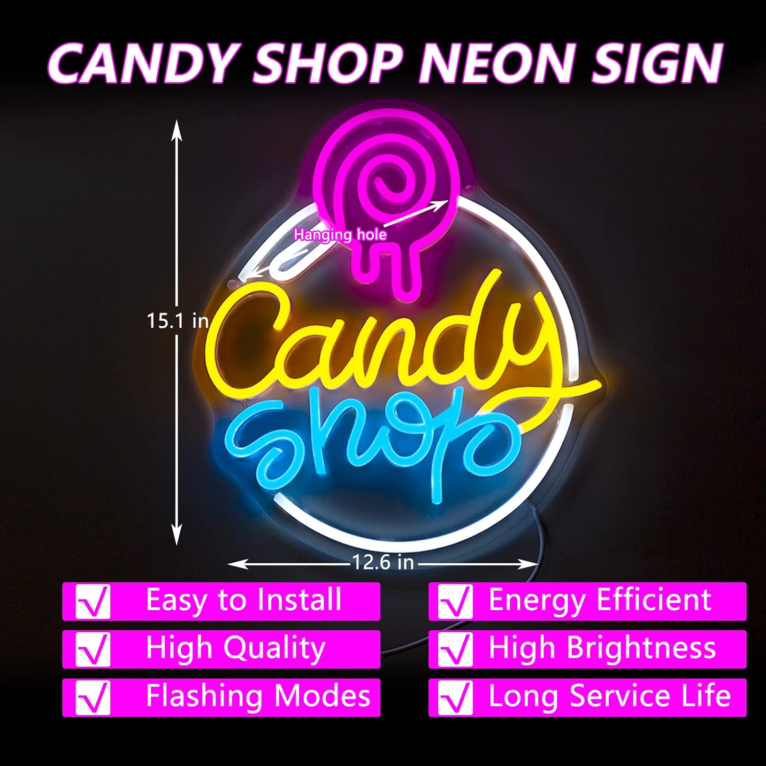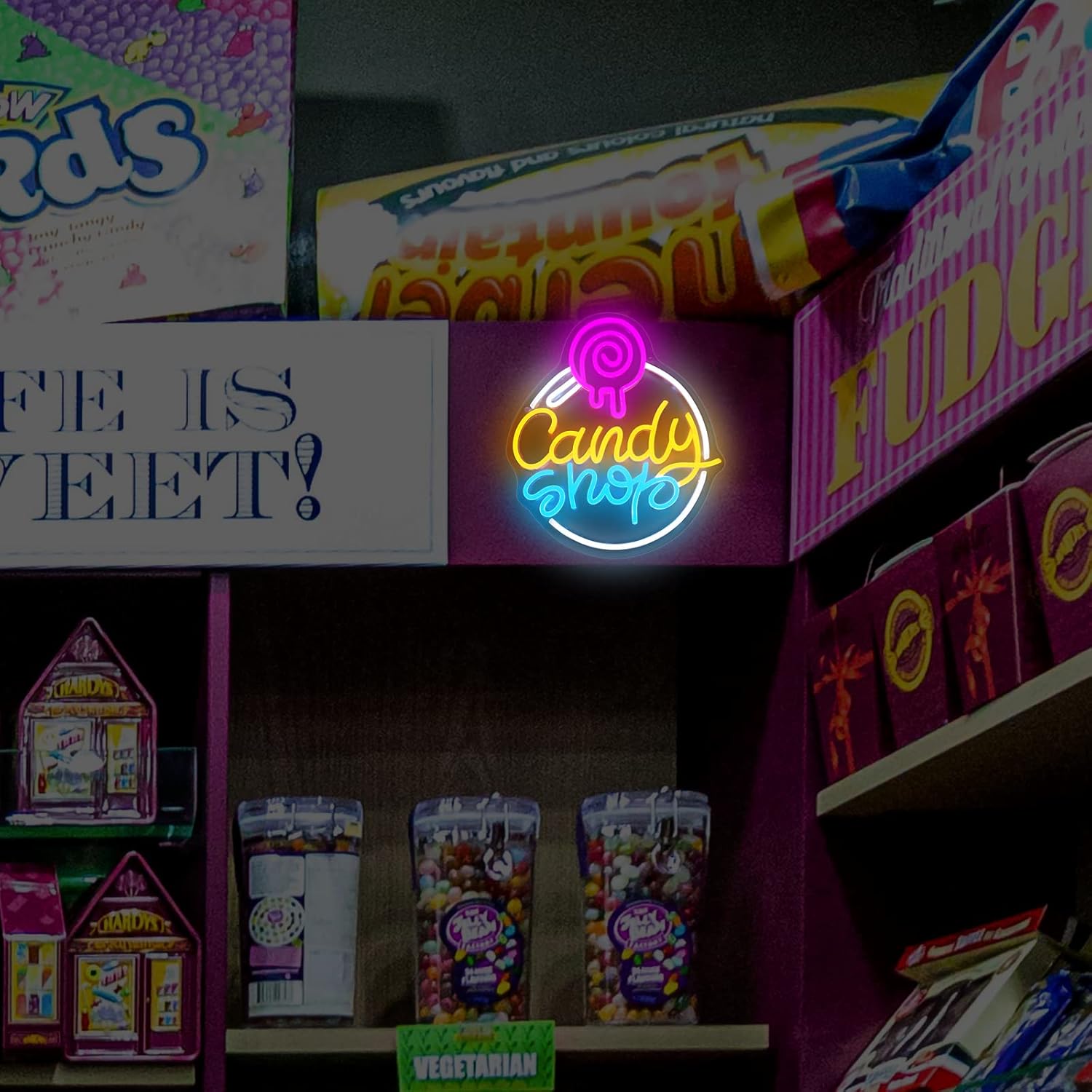 Candy Shop Neon Sign - LED Lollipop Wall Light for Stores & Events