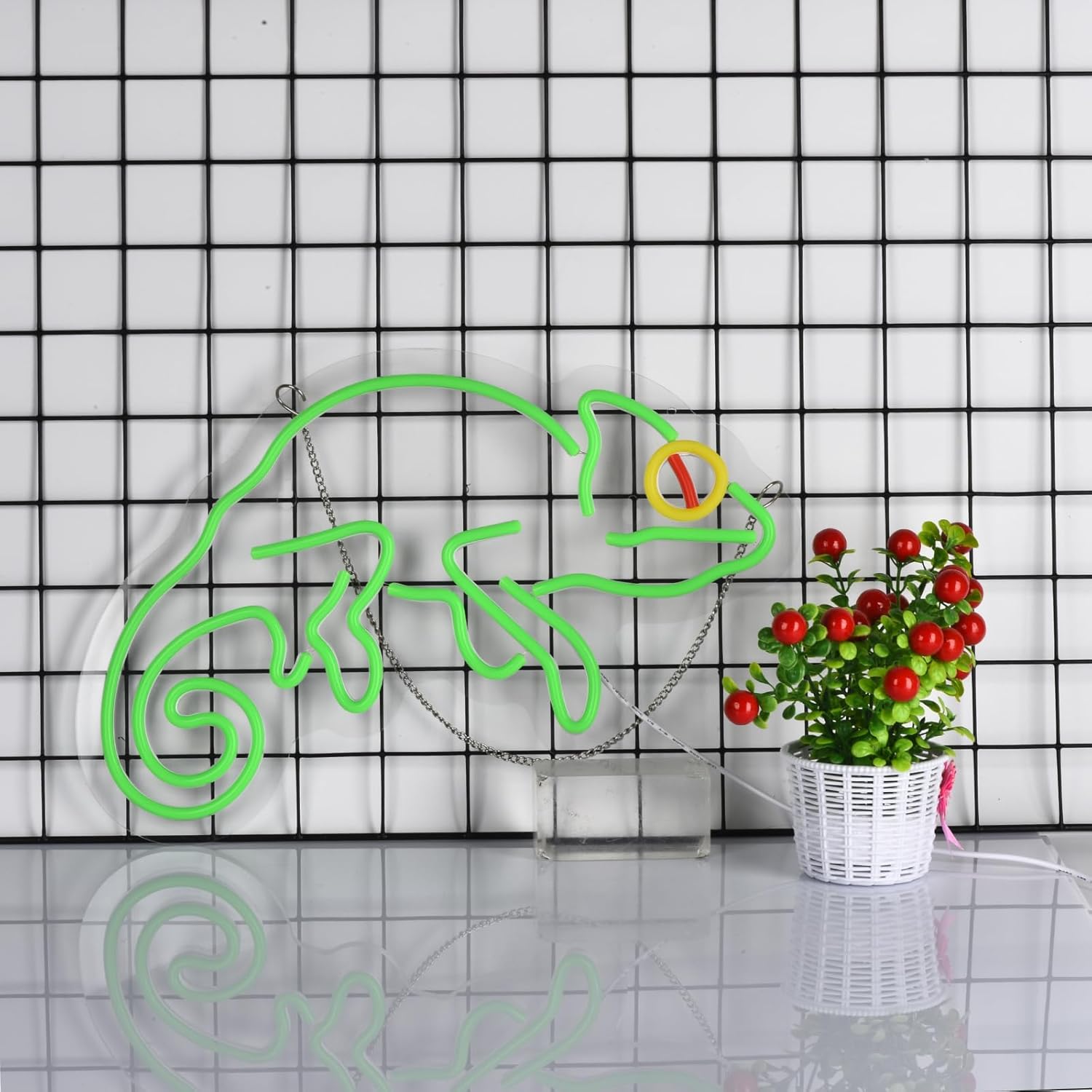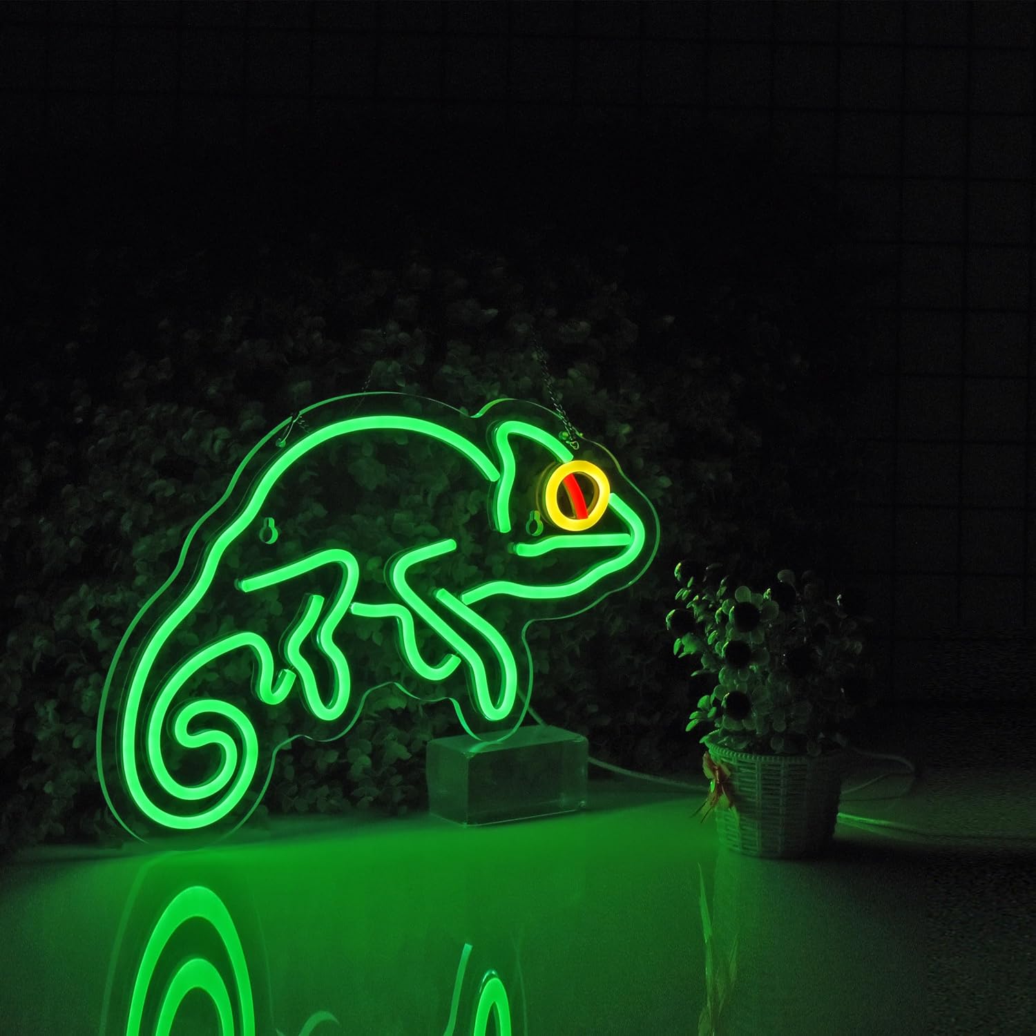 Add a splash of wild color to your space with this eye-catching Chameleon Neon Sign. Designed with vibrant LED lights, this glowing wall light is shaped like a playful chameleon – perfect for animal lovers, game rooms, kids’ bedrooms, or creative bars. Lightweight, easy to install, and USB-powered, it’s a fun, energy-efficient decor upgrade that makes your walls come alive!
