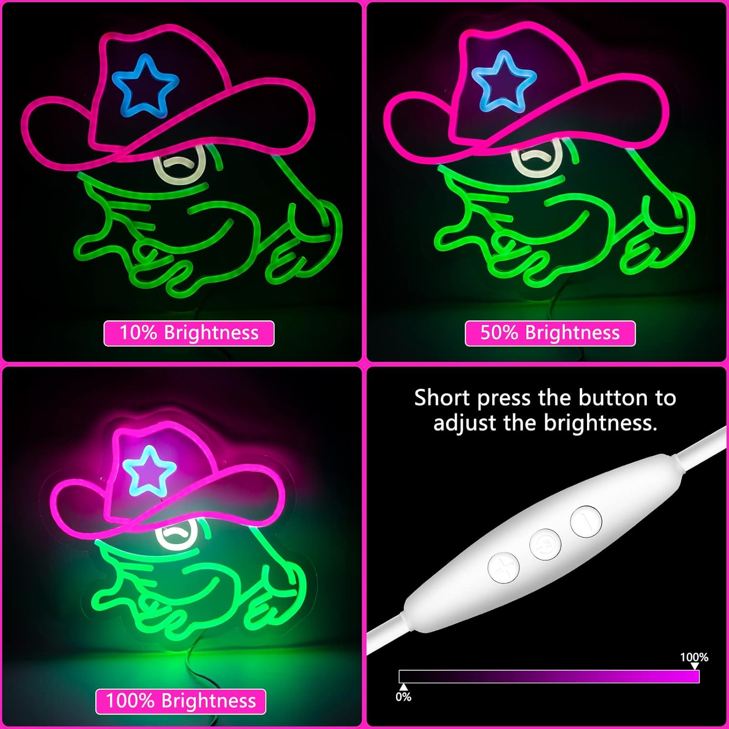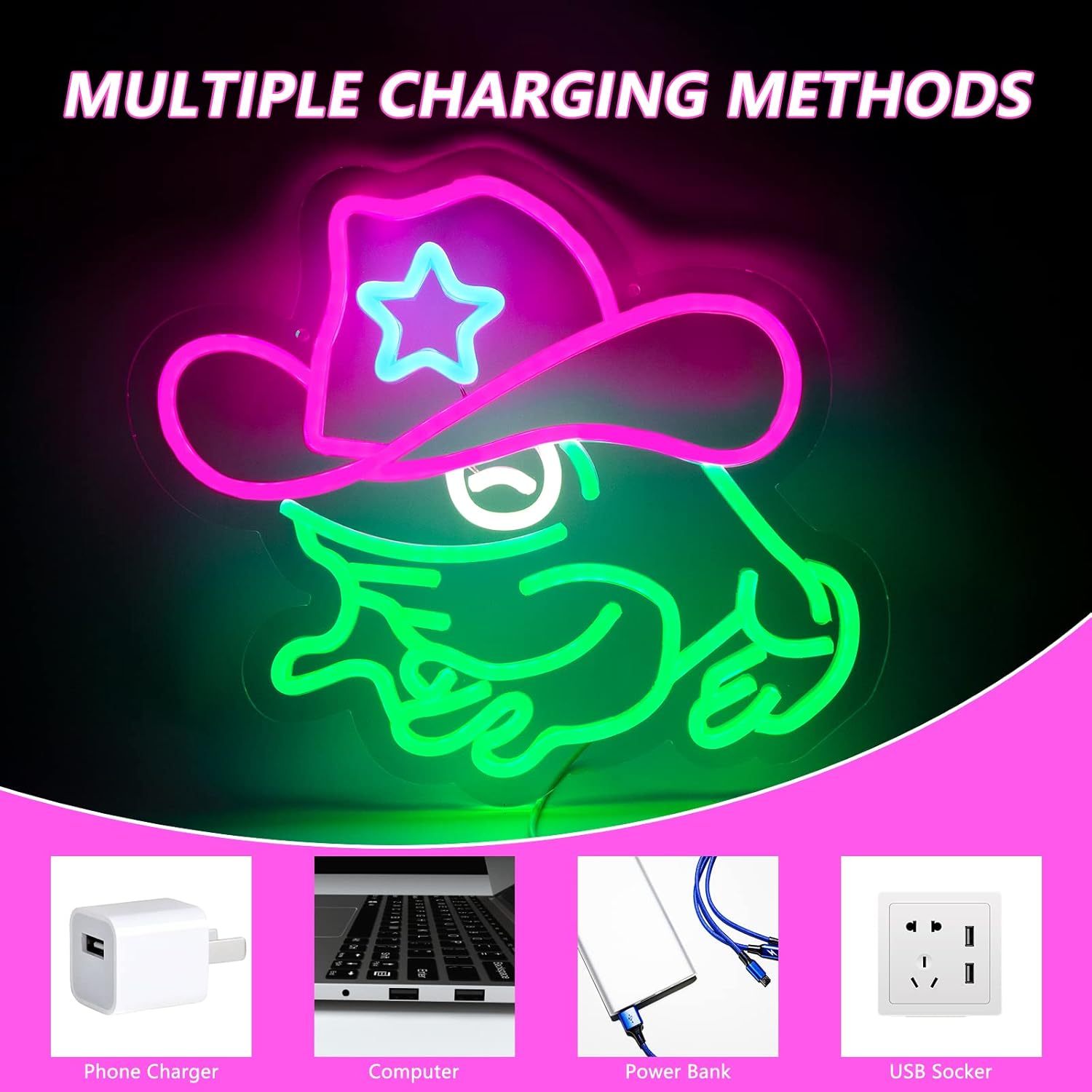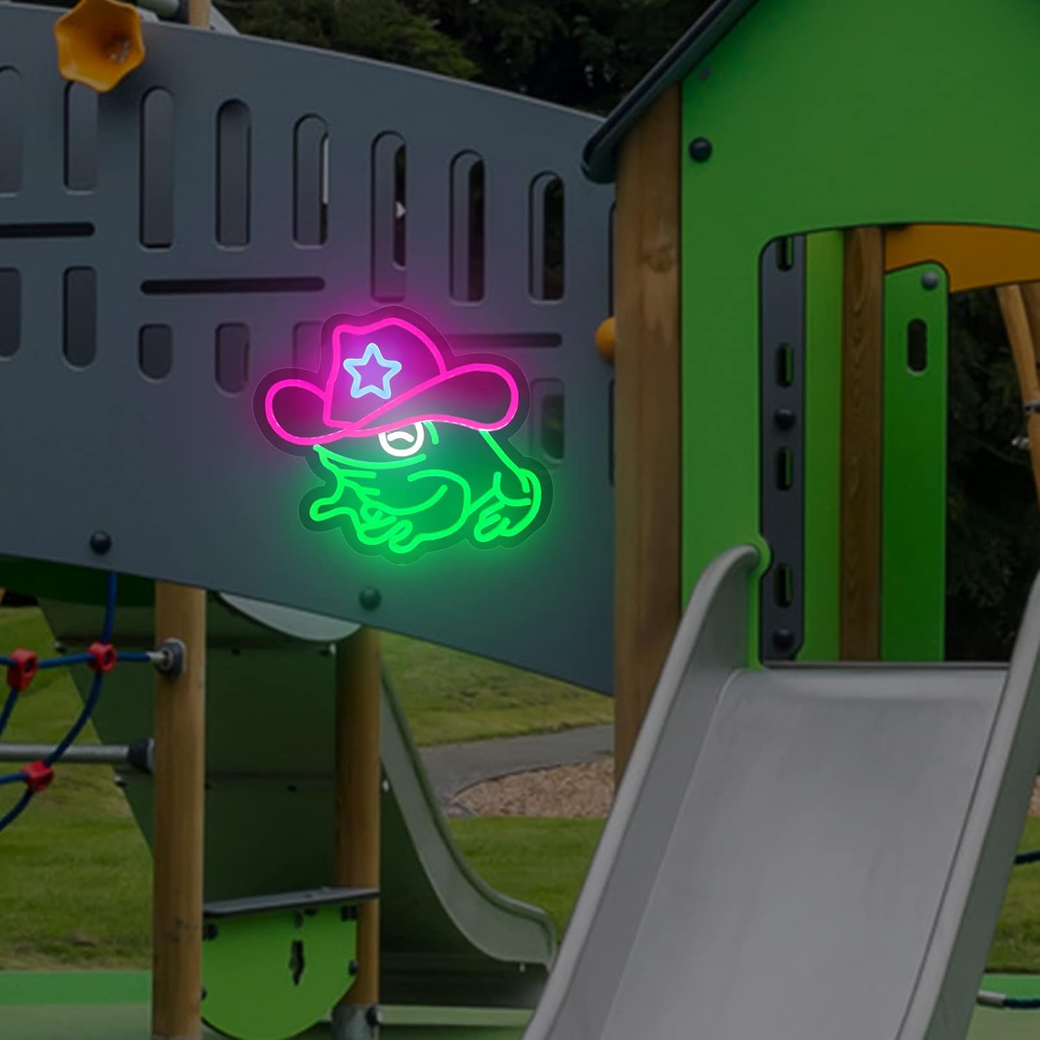 Cowboy Frog Neon Sign - Green LED Wall Light for Bars, Gamers & Western Decor