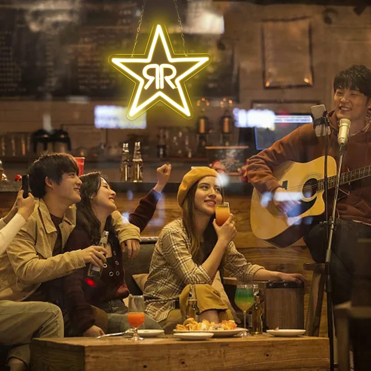 Double R Star Neon Sign - LED Wall Light for Bars, Studios & Home Decor