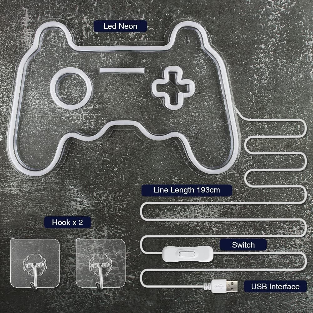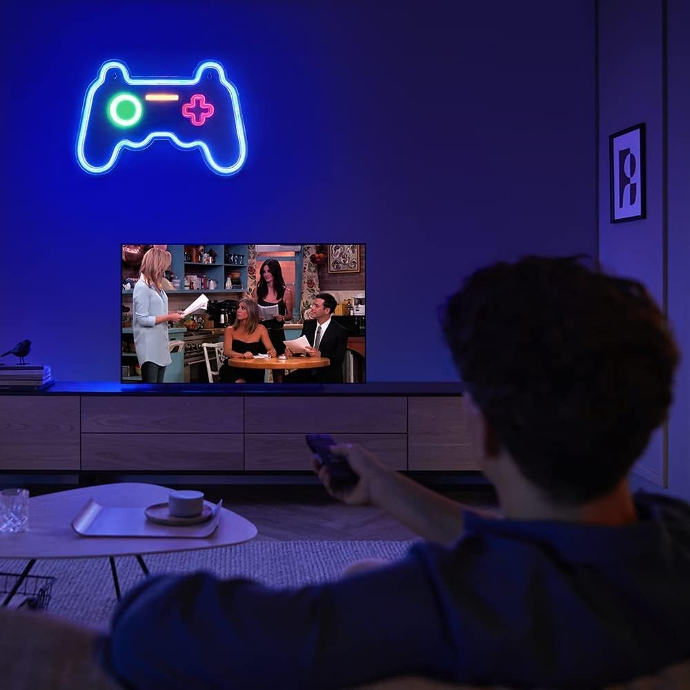 Level up your space with this eye-catching LED neon sign shaped like a gaming controller.
